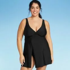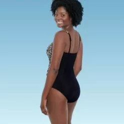 Women’s Slimming Control Shirred Square Neck One Piece Swimsuit – Dreamsuit by Miracle Brands Black