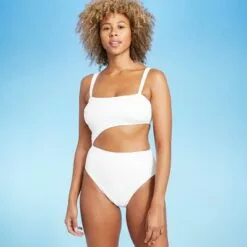Women’s Tall/Long Torso Ribbed Cut Out One Piece Swimsuit – Shade & Shore™ White