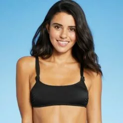 Juniors’ Plus Size Ribbed Knot-Front Bralette Bikini Top – Xhilaration™ Neon Pink