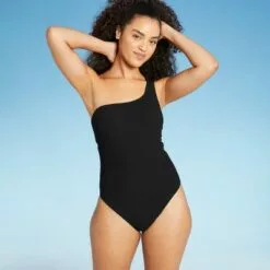 Juniors’ Textured One Shoulder One Piece Swimsuit – Xhilaration™ Coral Pink