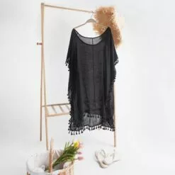 Women’s Black Tassel Hem Bat Sleeve Above The Knee Cover Up – Cupshe, One Size