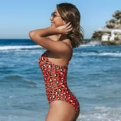 Women’s Red Leopard Print One Piece Swimsuit Cutout Back Swimwear Bathing Suit-Cupshe