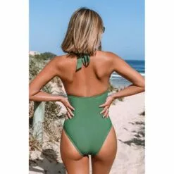 Women’s Green Plus Size One Piece Ruched Cutout Halter Self Tied Bathing Suit – Cupshe