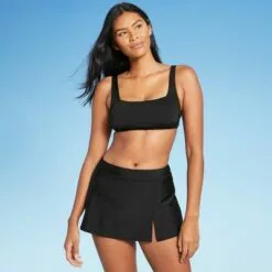 Women’s Ribbed Plunge Front V-Wire One Piece Swimsuit – Shade & Shoreâ„¢ Dark Green