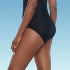 Women’s Slimming Control Shirred Scoop Neck One Piece Swimsuit – Dreamsuit by Miracle Brands Black