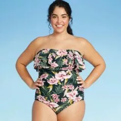 Women’s Bandeau Flounce High Coverage One Piece Swimsuit – Kona Solâ„¢ Multi