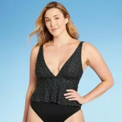 Women’s Plunge Front Scallop High Coverage One Piece Swimsuit – Kona Solâ„¢ Black