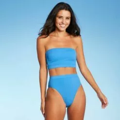 Juniors’ Ribbed Longline Bandeau Bikini Top – Xhilaration⢠Blue