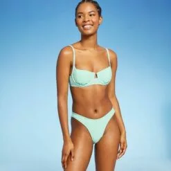 Juniors’ Textured Cheeky High Leg Scoop Bikini Bottom – Xhilaration⢠Blue