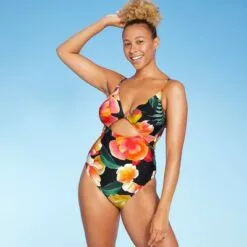 Women’s Front Keyhole Tie Back One Piece Swimsuit – Shade & Shoreâ„¢ Black Floral