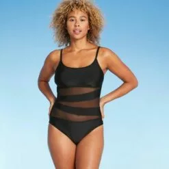 Women’s Mesh Front One Piece Swimsuit – Shade & Shoreâ„¢ Black