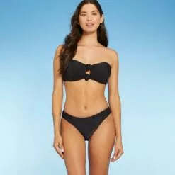 Women’s Ribbed Ruffle Cheeky Bikini Bottom – Shade & Shoreâ„¢ Black