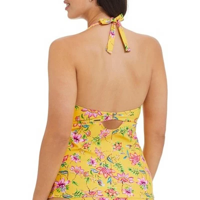 - Make waves in this plunge bright floral tankini top