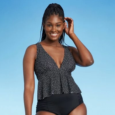 Add a cute and comfortable swim top to your waterside wardrobe with the Peplum V-Neck Cropped Tankini Top from Kona Solâ„¢. This V-neck tankini features thick, adjustable straps for a customizable fit that doesn’t dig into your shoulders, and it boasts a cute cropped design with ruffle detail for an adorable look that skims your curves and your choice of swim bottoms. Sewn-in cups provide comfortable coverage for all-day confidence, and elastic under the bust helps the top stay in place to move with you while you enjoy a swim or just soak up some sun.