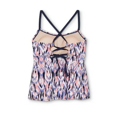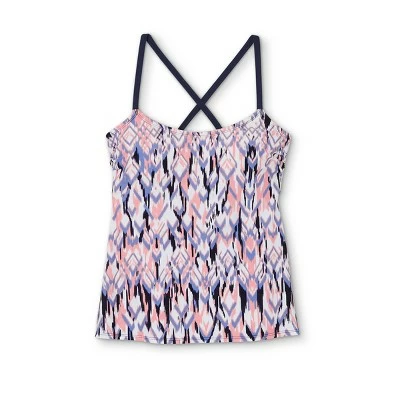 Whether you’re out for beach vacations or just spending the weekend by the poolside, this Cross Back Tankini Top from Kona Sol™ will help you create a stylish look for any occasion. Showcasing a diamond-like pattern, this sleeveless tankini top comes with black straps that form a crisscross design at the back for a chic style. The sewn-in cups help you provide extra coverage and comfort you’re looking for with water adventures. It is made with a soft and stretchy fabric that moves with you whether you’re diving or soaking up the sun. Style this multicolored tankini top with a solid-color bikini bottom to create a colorful and fun look.