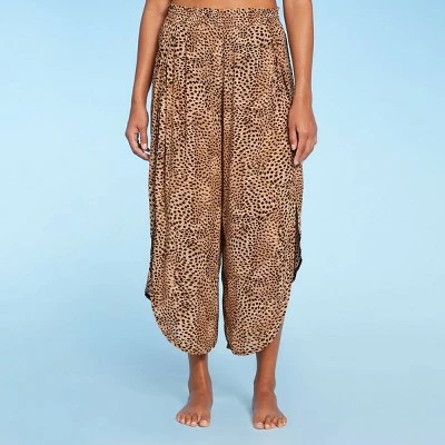 These Front Slit Cover-Up Pants from Shade & Shore™ takes you from beach lounging during the day to the boardwalk in roaring style. The cover-up pants showcase an allover animal print to bring a fun look to your after-swim looks. It features a relaxed silhouette with front slits for easygoing style and more room for movement. The lightweight fabric ensures cool comfort, while the elasticized waist ensures quick and easy wear. Simply pull on these swim cover-up pants over your favorite suits, and add a floppy hat and a pair of oversized shades to complete your laid-back style.