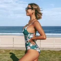 Make heads turn in our Green Floral Lace Up Backless One Piece Swimsuit. The swimsuit has adjustable shoulder straps and adjustable lace up back detailed with mini lattice cutouts for your perfect fit. The floral print also is a good choice for your beach trip!