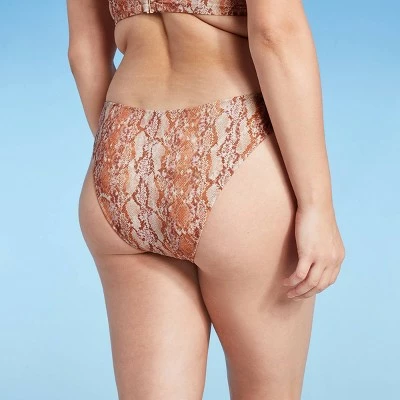 - High-leg extra cheeky bikini bottoms in a snake print bring an edgy style to your beach or pool wardrobe