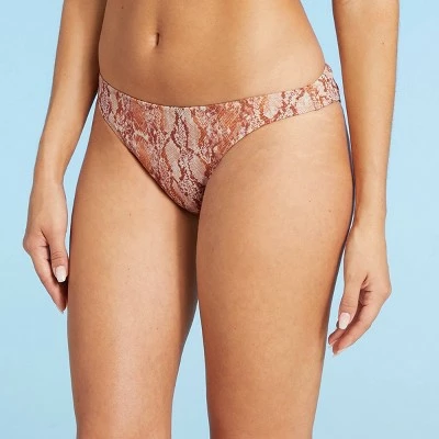 Move through warm-weather days in wild style with these High-Leg Extra Cheeky Bikini Bottoms from Shade & Shore™. The snake-print bikini bottom features a low-rise, extra cheeky silhouette for a sultry-sweet vibe, and the lurex fabric adds a glittery metallic look. The elastic at the leg openings provides comfortable movement, while the opaque construction offers coverage for confident wear. Pair them with a matching snake-print bikini top for a coordinated look, or with other bikini tops to create your own mix-and-match style.