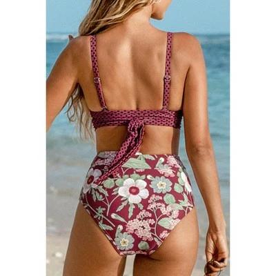Soak up the sun in our polka dot and floral twist bikini. The polka dot bikini top has moulded cups and tie at the back for added support and adjustable fit. The matching high waisted floral bikini bottom provides flattering tummy coverage for a comfy, no-stress day at the beach! Product Code: ADK8004M