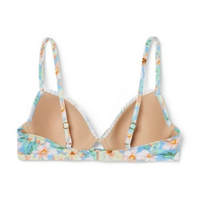 Embrace the warming sunbeams on your skin wearing the Lightly-Lined Ruffle Detail Tie-Front Bikini Top from Shade & Shore™. This bikini swim top is adorned with a beautiful floral print in yellow, green, white, peach and brown shades on a light-blue background for a pretty look. It’s elevated further with ruffle trimming on the cups and tie-front strings to adjust the shirring, along with semi-circular underwires on the bustline for a shapely look. It has a wide neckline, adjustable shoulder straps and a back strap with a hook-and-loop closure to give you a secure and customized fit. The floral swim top is made from a soft, stretchy fabric that offers you flexible movement whether you are swimming or lounging along the shore and more. Round out your look with a matching bottom, or mix it up with a solid bottom in a coordinating or contrasting color to create a look that’s completely your own.
