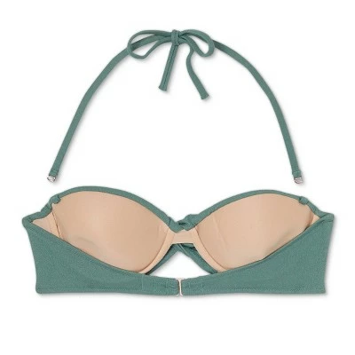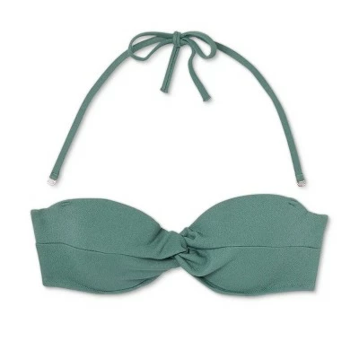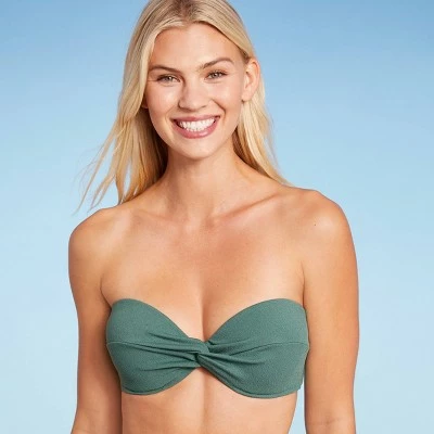 Stock up your closet for your next beach vacation with the bold style of this Lightly Lined Twist-Front Crepe Textured Bandeau Bikini Top from Shade & Shore™. Made with soft and stretchy crepe fabric for flexible movements, this bandeau bikini top features a twist-front design for a fun, chic look. Plus, the lightly lined underwire design helps provide the right support for confident wear throughout your adventures. Simply pair this cactus green bandeau bikini top with solid-color or printed bikini bottoms to create tons of stylish looks for beachside or poolside fun.