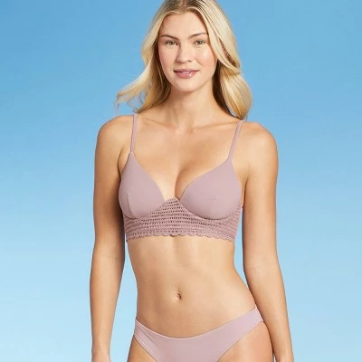 Add a delightful pop of texture to your waterside look with this Longline Crochet Detail Bikini Top from Shade & Shore™. This longline bikini top is adorned with eyelet crochet detailing along the hemline for a sweet look, while the crisscross drawstring closure at the back provides a secure fit. The removable cups let you tailor your look to meet your personal preferences, and the underwire provides extra lift. The top is made from stretchy fabric with soft lining that offers you flexible movement whether you are swimming or lounging along the shore and more. Wear it with matching bottoms and your fave beach accessories to finish the look.