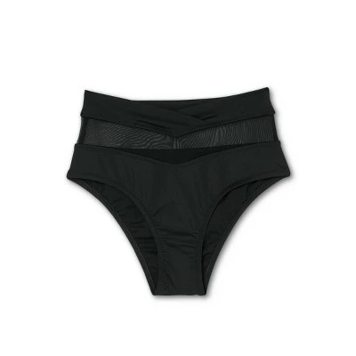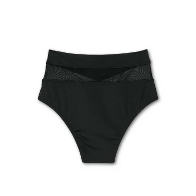 Style meets sassy details in the Mesh-Insert High-Waist Bikini Bottoms from Shade & Shore™. Made to stay put through an active day in the water, these black bikini bottoms are designed with a mesh insert that offers a peek of skin to keep the look fresh and fun yet sophisticated. These high-waist bikini bottoms are constructed of a soft fabric with added spandex for comfort. Whether you’re lounging poolside or wading into the surf, these versatile bottoms can be paired with a wide array of tops to suit any adventure.