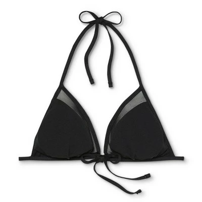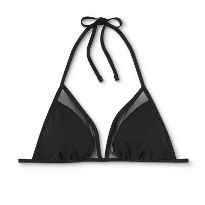 Relax poolside or walk along the shore in comfort and style wearing this Mesh Triangle Bikini Top from Shade & Shore™. Crafted from a soft fabric with added spandex for easy movement, this bikini top features an adjustable halter and tie back to help you find the perfect fit. Plus, the removable cups allow for customizable coverage. In a black hue, this playful bikini top comes in a triangle cut with a mesh insert to show a hint of skin. Pair it with solid or patterned swim bottoms to create your own chic swimwear outfits.
