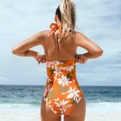 Looking to get tropical? Cupshe’s orange floral one piece swimsuit is for you. Self-tie straps let you adjust the fit, while the square ring creates a belted look to accentuate the waist. This is a great option for modest coverage.Product Code: ASL9080EY