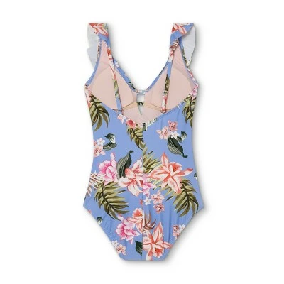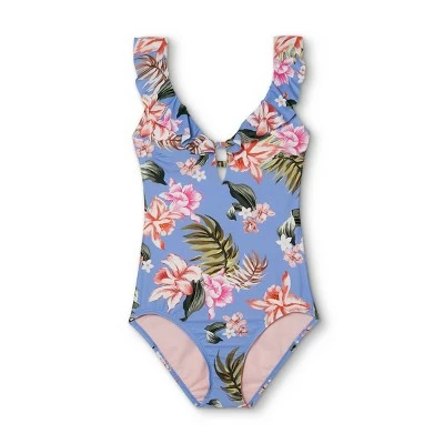 This Over-The-Shoulder Ruffle High Coverage One-Piece Swimsuit from Kona Sol™ is perfect for a day at the beach or lake. The spandex-blend fabric, open back and sewn-in cups provide maximum comfort, while the colorful island floral print is fun, stylish and eye-catching. Perhaps best of all, it can be laid flat or hung on a clothesline for fast, easy drying. Accessorize it with a comfy cover-up, sunhat and sunglasses for a pool-party outfit you’ll turn heads in.