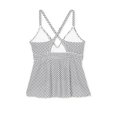 Bring on-trend flair to your summer adventures with the Plunge Criss Cross Peplum Tankini Top from Kona Sol™. Showcasing an allover crisscross pattern for a lovely look you’ll love to flaunt, this tankini comes with plunge neckline and peplum shape for added interest and shape. You’ll love the stretchy fabric that ensures flexible movement in and out of the water, with removable cups for shaping and support, while the crisscross open back allows you to show some skin. Adjustable straps help you find the right fit so you can go about your sunny-day adventures in total comfort, making this a piece you’ll reach for again and again.