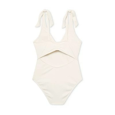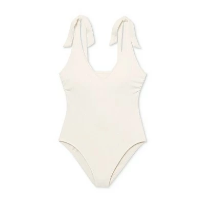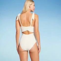 - Shoulder-tie ribbed one-piece swimsuit makes a flattering swimwear option