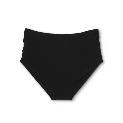 The High-Waist Bikini Bottom from Kona Sol™ is sure to become a favorite in your collection of swimwear with its simple yet chic style. This swim bottom comes in a solid black color that makes it easy to coordinate with any color or pattern to let you create a wide range of swim looks. A high waist gives the bikini bottom an on-trend look that couples perfectly with the full-coverage back to create a piece that shows off your style while keeping you covered. Cinched detailing at the sides adds to finishing touch to give a little extra dimension to the swim bottom.