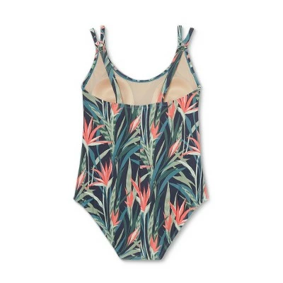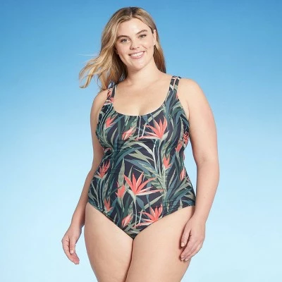 The Open Strappy One-Piece Swimsuit from Kona Sol™ is ideal for swimming laps or just lounging by the pool. This suit boasts a one-piece design that is both stylish and functional, as you can move around in comfort with the confidence of a stay-put fit. The scooped neckline and full-coverage bottom offer the coverage you need for even more comfort, while the plain back balances the silhouette. Sewn-in cups offer smooth shaping and support, and you’ll love the beautiful tropical pattern.
