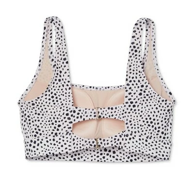 Bring confident style to your swim collection with the Square Neck Bikini Top from Kona Sol™. In a fun animal print and sporting a cutout back for effortless style, this bikini top has a square neck and features a wide band for added interest and subtle coverage. Two back hook closures and wide shoulder straps lend a secure, comfortable fit, while sewn-in soft cups provide modesty. Finish your ensemble with high-waisted swim bottoms or swim shorts for a distinctive swim look that hits the mark.