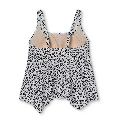 You’ll love the fierce style the Square Neck Sharkbite Tankini Top from Kona Sol™ adds to your swimwear collection. This tankini top pops with an allover leopard print in black against a gray backdrop for a bold look that’s kept from being too busy by the neutral tones. A square neckline and sewn-in cups provide plenty of bust coverage, and the tankini style also keeps your torso covered. A sharkbite hem creates some flowiness at the bottom of the tankini for playful movement, and adjustable straps make it easy to find just the right fit.