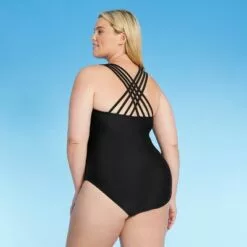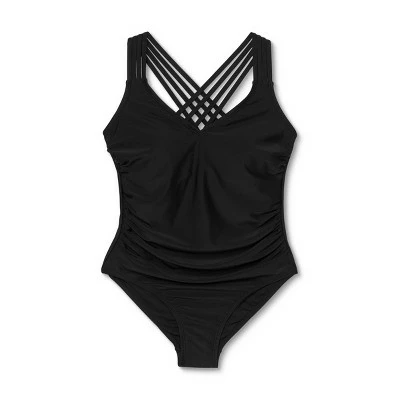 Whether swimming in the water or just basking on the shore, you’ll look and feel great in the Strappy Back One-Piece Swimsuit from Kona Sol™. With its classic one-piece silhouette and basic black color, this swimsuit has a classic, chic look that’s taken up a notch by thick straps separating into three thinner straps each in the back for a striking look. Sewn-in cups help to keep you covered for confident wear, and shirring at the sides and across the stomach help to create a flattering silhouette.