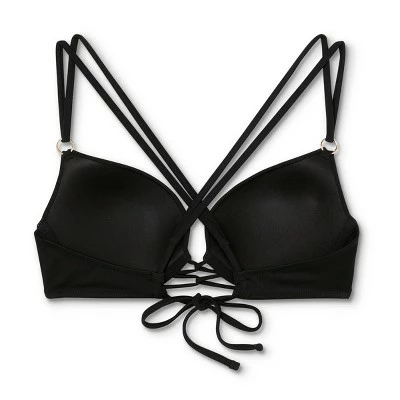 You’re sure to look on-trend while catching rays poolside in the Push-Up Double Strap Bikini Top from Shade & Shore™. This stylish strappy bikini top features crisscrossing back straps that tie for a fit you can adjust to suit your needs. The push-up design creates a flattering shape, while nylon-spandex blend construction provides a soft and comfortable fit. Doubled-up shoulder straps and strappy crisscrossing details in the front add a little extra attitude to this solid bikini top, which pairs perfectly with a wide variety of bottoms in coordinating or contrasting shades.