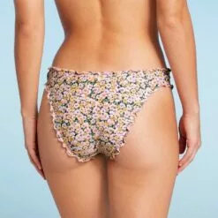 Add pretty frills and florals to your swimwear with this Yellow Floral Ruffle Cheeky Bikini Bottom from Shade & Shore™. This yellow-and-green floral print bikini bottom makes a charming pick in your swim wardrobe. Fashioned with a low-rise cheeky silhouette, it’s detailed with lettuce ruffles on the trim for a sweet touch of texture and style. The stretchy fabric lends comfortable movement, while the fully lined opaque construction offers confident wear. Pair with a matching floral top or a solid-color bikini top for an endless array of styling options.