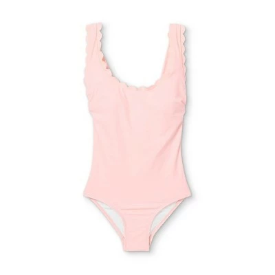 - Scallop scoop-neck medium-coverage one-piece swimsuit