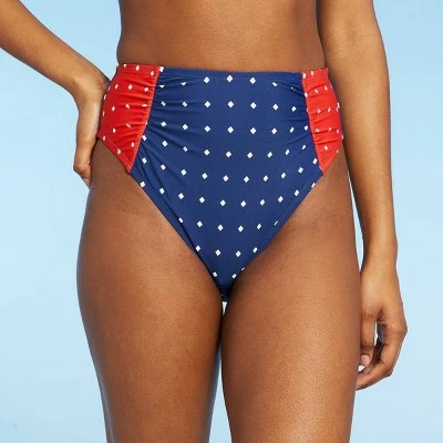 Red, White and Blue gets a new look in this colorblocked Diamond Printed Bottom from Sea Angel. Marina Blue is a focal point with a pop of Cherry Pie Red and adorned with white diamonds for a modern take on Americana. Side-shirred panels make for a universally flattering look. Pair it with the matching color-blocked top or with your favorite solid bikini top. Soft fabric with spandex makes this a comfortable and easy piece to wear.
