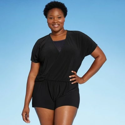 Take your swim looks up a notch with this Romper Cover-Up from Aqua Green®. This cover-up showcases an open crossover front design, for easier on/off convenience, as well as sleeves for added sun protection. Perfect to throw on over your tankini, one-piece swimsuit, and more, this romper cover up offers a stylish look that gives you a little extra coverage on your way to or from the pool or beach. And with the UPF 50+ rating, this cover-up also offers some extra protection for your skin from harmful sun rays.