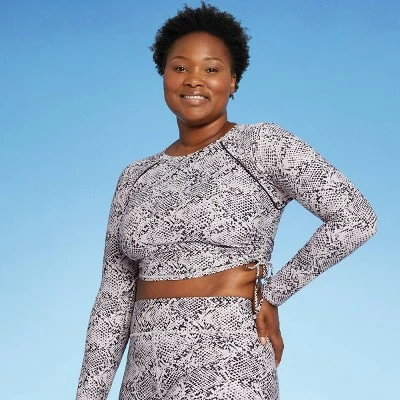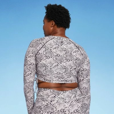 This long-sleeve cropped rash guard in a snake print offers on-trend style, and the crop top length gives you just enough coverage. UPF 50+ rated material helps block the sun’s harsh UV rays, and the opaque fabric gives you confidence in and out of water. Plus, the pullover fit with a side-cinch design offers a comfortable and secure feel.