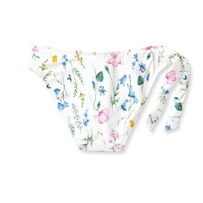 Love Blooms in this whimsical Watercolor Floral Bikini Bottom from Sea Angel. Bridal white with pops of blues, pinks and yellows make the perfect combination for the bride to be. A modern take on a classic brief, updated with a functional single side tie for a secure fit and to show off the latest in fashion. The perfect piece for brides and bridesmaids alike. Soft and stretchy fabric makes this perfect for walks on the beach or swimming in the pool.
