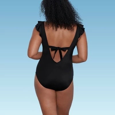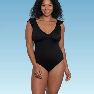 You’re as charming as can be in Beach Betty’s Slimming Control V-Neck One Piece. In classic solid black, the figure-flattering V-neck is complemented by the plunging back, accented with an adjustable back tie to keep everything secure. Flutter sleeves add a flirty touch, offering a little extra protection from the sun. Miracle Brands’ exclusive fabric smooths and shapes your silhouette, while removable foam cups make sure you feel fully supported and totally confident.