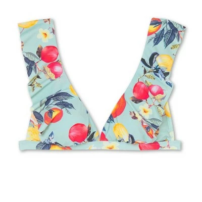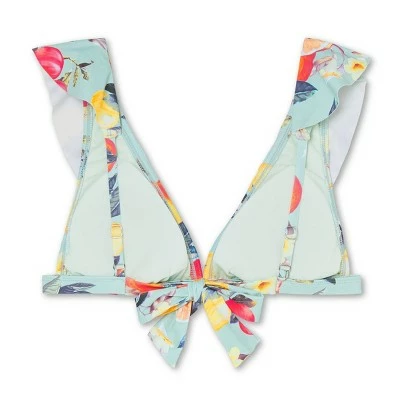 You’ll love the soft, sweet style of this Soft Ruffle Bralette Bikini Top from Kona Sol™. Featuring thick shoulder straps in the front with flouncey ruffle details, this bralette bikini top adds a sweet, feminine look whether you pair it with coordinating or contrasting bikini bottoms. Removable cups and adjustable shoulder straps let you customize your fit and coverage, while a tie-back closure makes it easy to find the perfect feel for you. Plus, an allover pattern of dainty blossoms and colorful fruit provides a standout look you’ll love sporting at the beach or pool.