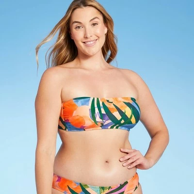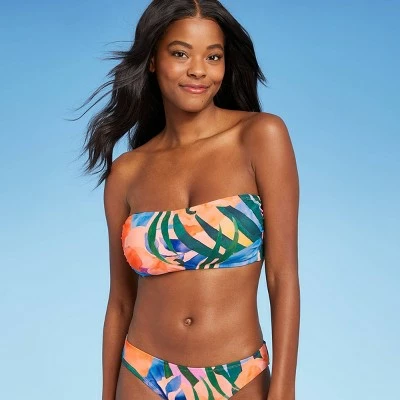 You’ll love the tropical style the Strapless Bandeau Bikini Top from Kona Sol™ adds to your swimwear. This bikini top has a playful look with a bandeau neckline that’s perfect for when you want to avoid getting lines while out in the sun, and it also comes with a halter strap that you can attach just as a second styling option or for a little extra security. A swan-hook back holds the top securely closed, and removable cups let you decide how much coverage you want at the bust. The piece pops with a vibrant tropical floral pattern in coral, blue and green that looks equally as great with the matching bikini bottom as with solid-color bottoms in one of the floral hues.