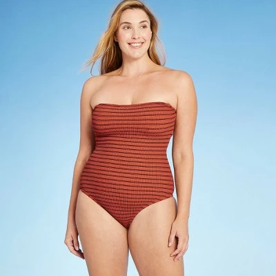 Bring chic retro vibes to your beach looks with the fun texture and simple style of this Textured Pucker Medium-Coverage One-Piece Swimsuit from Kona Sol™. Featuring an understated copper color fabric with thin contrasting stripes and a unique puckered texture, this one-piece swimsuit offers a medium coverage fit with a removable halter strap to customize your look. Molded cups provide comfortable coverage and shaping, while the halter neckline gives you an endlessly adjustable fit so you can find the right look for you.