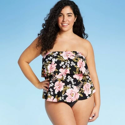 The Tiered Bandeau Tankini Top from Kona Sol™ is sure to become a go-to favorite in your swimwear options. This bandeau-style tankini is the perfect blend of modesty and edgy flair — the tankini style provides full coverage of your chest and torso, but it’s strapless to show off just a bit more of your shoulders. The tiers add breezy flow to this floral-print tankini and create some movement you’ll love. Pair the ruffled tankini with a black swim bottom for a chic swim ensemble, then layer on denim shorts and a sun hat for entertaining by the water.